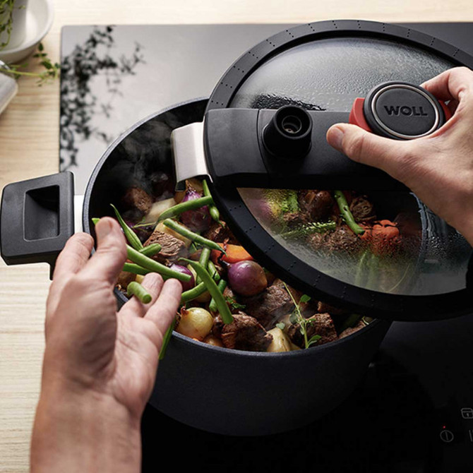 Les autocuiseurs Woll Diamond LIte vous permettent également de les utiliser comme un autocuiseur normal et, dans le cas de l'utilisation du couvercle avec la technologie Active Lite, d'ajouter tous les avantages de la cuisson sous pression.
