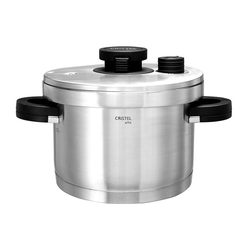 La pentola a pressione Alto di Cristel è una meraviglia di linee semplici, meccanismi ben studiati e dettagli eleganti.