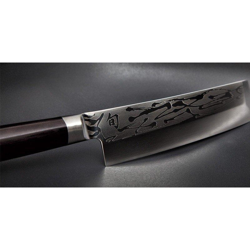 De diseño moderno, hoja de extrema dureza y durabilidad y un perfecto balance en mano, éste cuchillo Usuba Shun pro SHO será la extensión natural de tu mano en su trabajo en la cocina. Cada cuchillo viene con un grabado ornamental en la cara derecha de la hoja que le da un aire único y gracias a su mango de Pakka no pasará desapercibido en ninguna mesa.