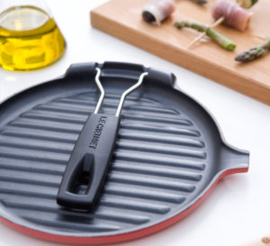 Na Lecuine, pode encontrar frigideiras e grelhadores de ferro fundido Le Creuset.