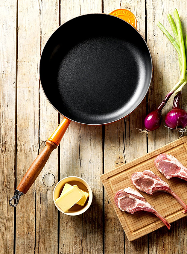 Fabricadas em França, as frigideiras de ferro fundido Le Creuset são dotadas de um design mais rústico e que lhes aporta uma elegante robustez.