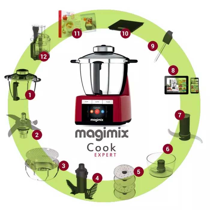 Por ser o robot de cozinha mais equipado do mercado, o robot multifunções da Magimix é composto por: