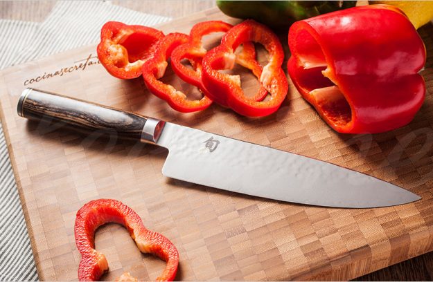 - Faca Kai de chef Shun Premier: Da mesma marca que a anterior, o seu design é extraordinário, feita em aço de damasco com 32 camadas resistentes à corrosão, e embelezada com uma superfície martelada à mão conhecida no Japão como Tsuchi-me.