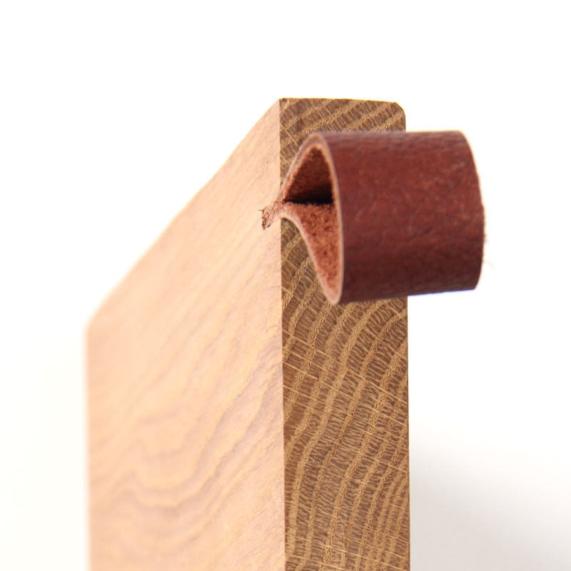 Tábua de cortar com 4 tamanhos disponíveis em madeira de carvalho e fita de couro natural responsável. As madeiras da Rio Lindo provêm de florestas 100% sustentáveis e destacam-se pela sua beleza e principalmente pelo seu toque.